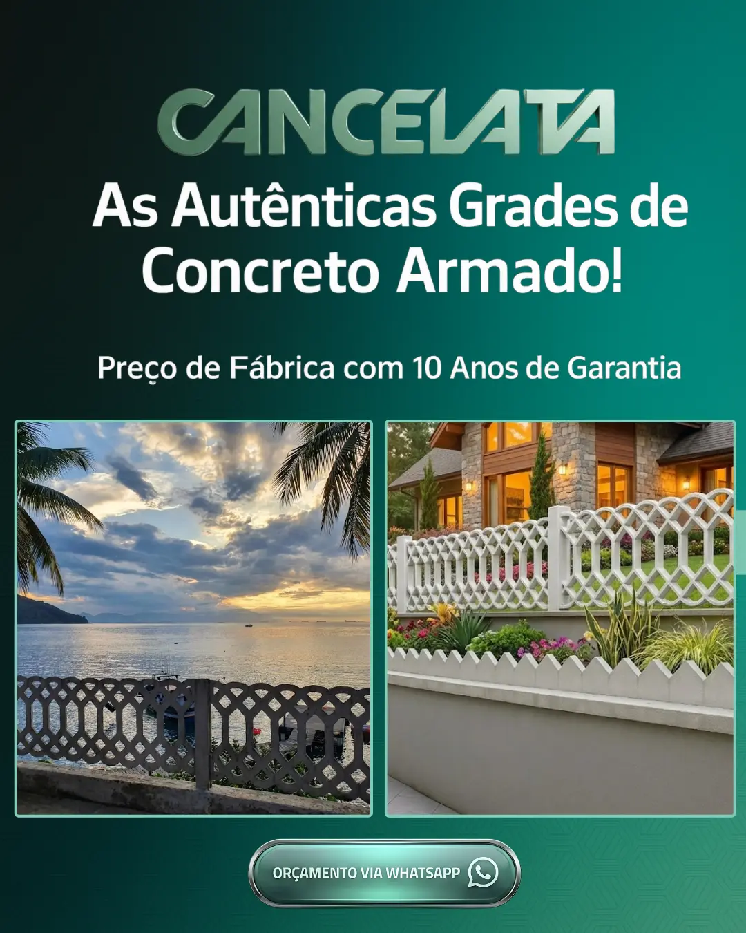RECONHECIMENTONão obstante algumas tentativas fracassadas de copiá-las, a CANCELATA é sinônimo de qualidade e como tal, seu nome tornou-se ícone no mercado para quem procura uma grade ornamental de concreto armado.